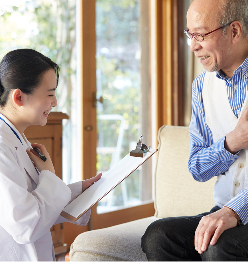 介護保険に加入されている方のご自宅に薬剤師が訪問し、薬の処方と服薬指導を行います。処方箋に基づいた調剤を行いながら、安心してご自宅で過ごせるようサポートいたします。